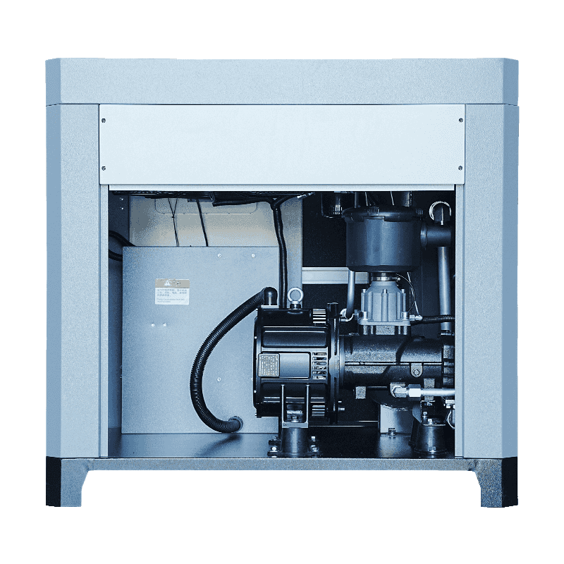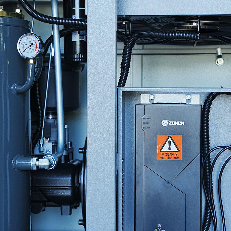 30HP mikro-olje tvillingskruekompressoren har en permanent magnet synkronmotor med beskyttelse mot lav temperaturøkning og et frekvensomformingskontrollsystem, som begge påvirker vibrasjonsegenskapene. Det direkte og effektive samspillet mellom motoren og skruerotoren sikrer jevn dreiemomentoverføring samtidig som den reduserer mekanisk oscillasjon under oppstart, drift eller retardasjon. I tillegg lar frekvenskonverteringsteknologien maskinen akselerere og bremse gradvis, og minimerer plutselige momenttopper som kan forårsake uønsket vibrasjon. Mikroolje-smøresystemet stabiliserer interne komponenter ytterligere ved å redusere friksjonen mellom bevegelige deler. Som et resultat, selv om eksterne vibrasjonsdempende strukturer fortsatt kan være nødvendig i visse miljøer, gir kompressorens interne arkitektur allerede et grunnlag for balansert og jevn drift.